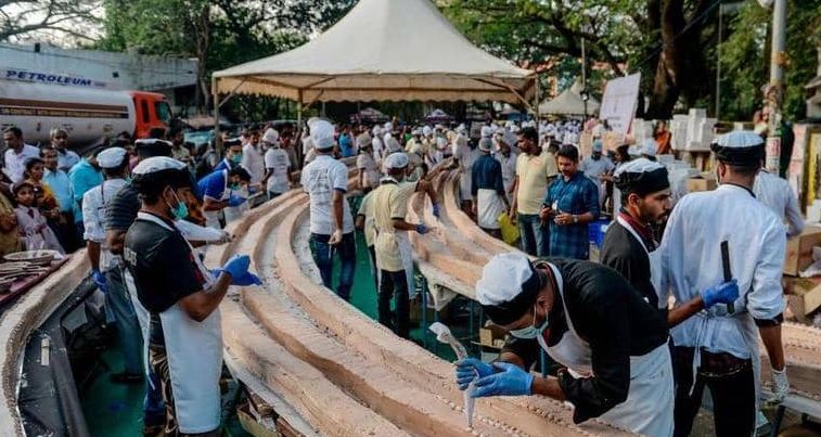 الهند – في محاولة لكسر الرقم القياسي بموسوعة “غينيس” للأرقام القياسية، شارك حوالي 1500 خباز وطاه في ولاية كيرالا جنوب غربي الهند في إعداد وصناعة كعكة فانيليا تمتد على مسافة 6.5 كيلومتر وتزن نحو 27000 كيلوغرام.