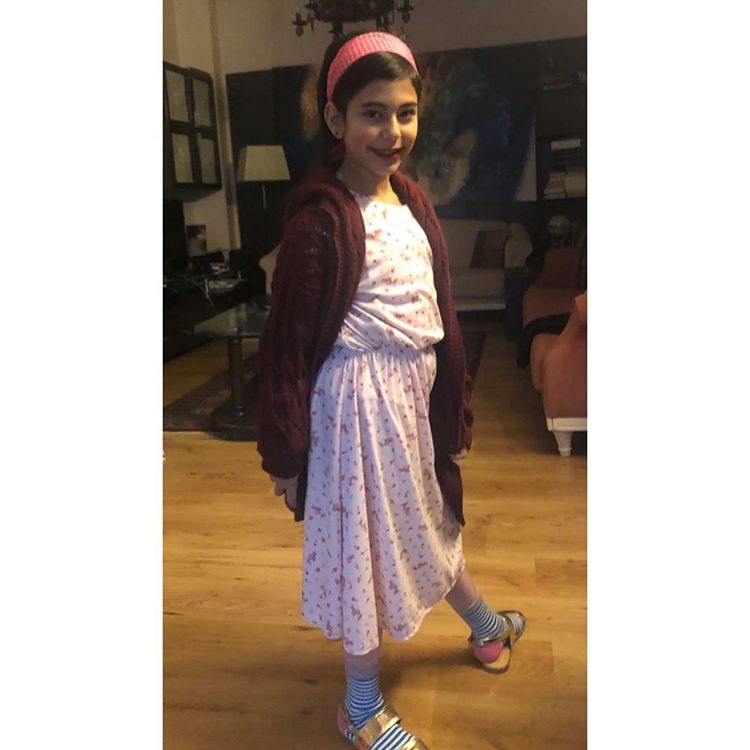 وتعليقاً كتبت عرفة: “مريم عندا واجب ترفيهي بالمدرسة تلبس شخصية من مسلسل فقررت تلبس لبس شخصية دنيا”.