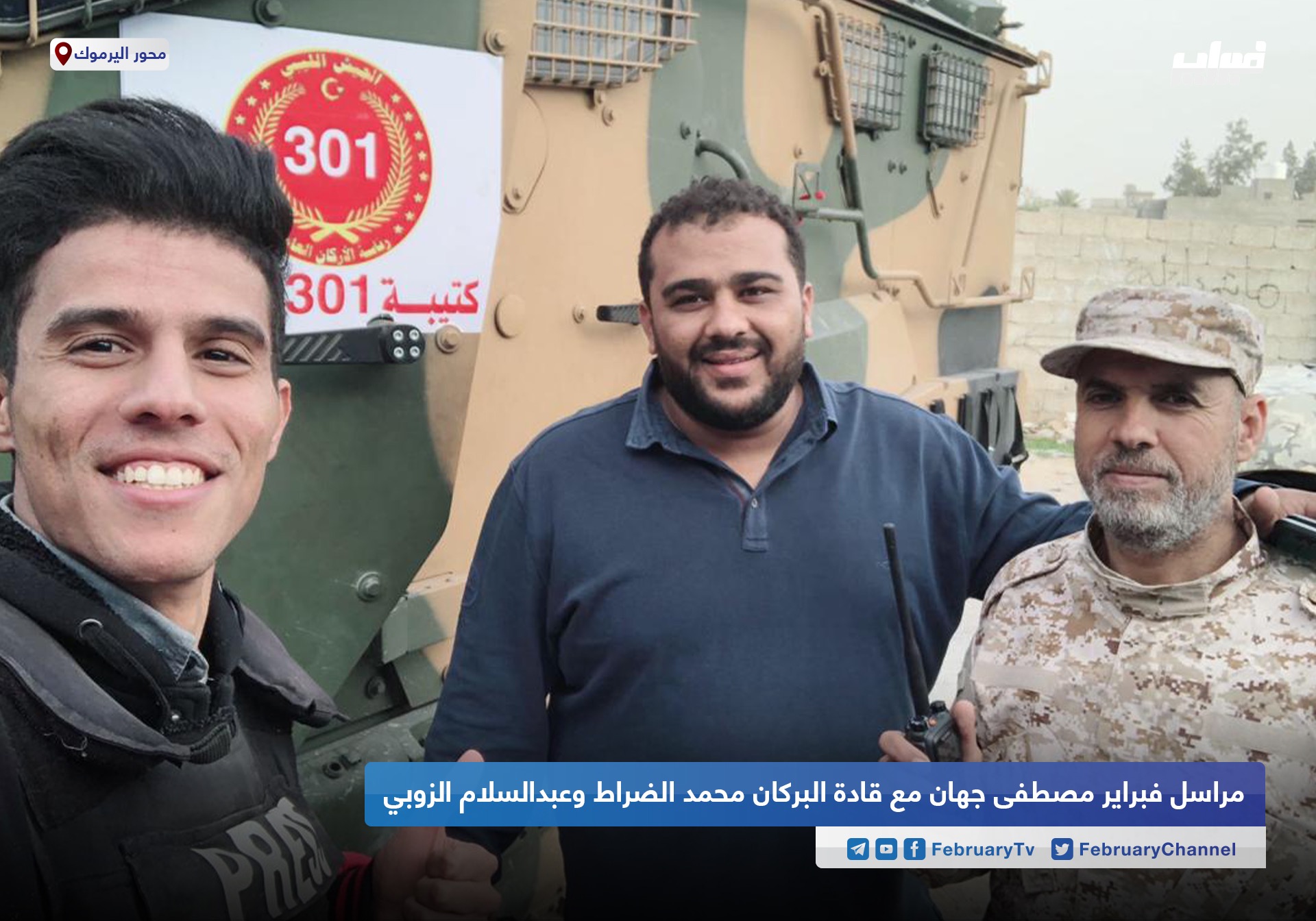 صورة أرشيفية للضراط القلاو مع عبدالسلام زوبي آمر كتيبة 301 رفقة مراسل قناة فبراير