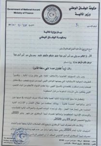ختاماً أخلت وزارة المالية في بيانها مسؤوليتها القانونية والأخلاقية أمام الشعب الليبي إزاء تصرفات محافظ مصرف ليبيا المركزي.