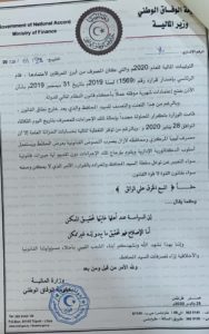 ونوّهت إلى أنه تم إعداد أذونات الصرف والحوالات المالية للقطاعات والوحدات الإدارية الحكومية وإحالتها لمصرف ليبيا المركزي عن شهر يناير 2020 بتاريخ الخميس الموافق 23 يناير 2020م.