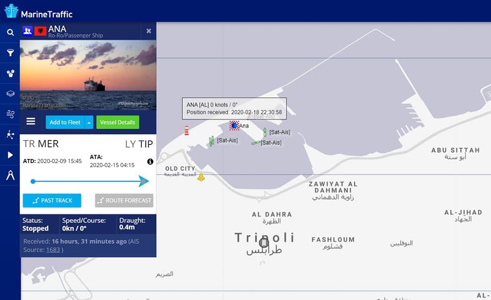 ليبيا – تستعد السفينة ANA التي كانت ترفع علم ألبانيا لنقل شحنة معدات عسكرية أخرى إلى ليبيا من ميناء اسطنبول عقب نجاتها من القصف الذي استهدف تواجدها في ميناء طرابلس الشهر الماضي واسفر عن مقتل ثلاثة ضباط اتراك كانو جوارها .