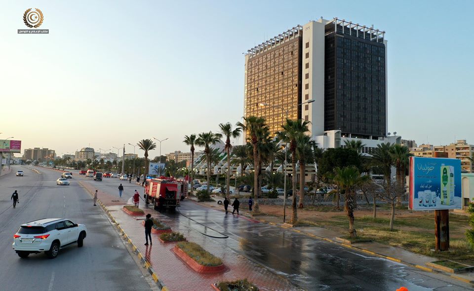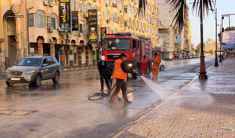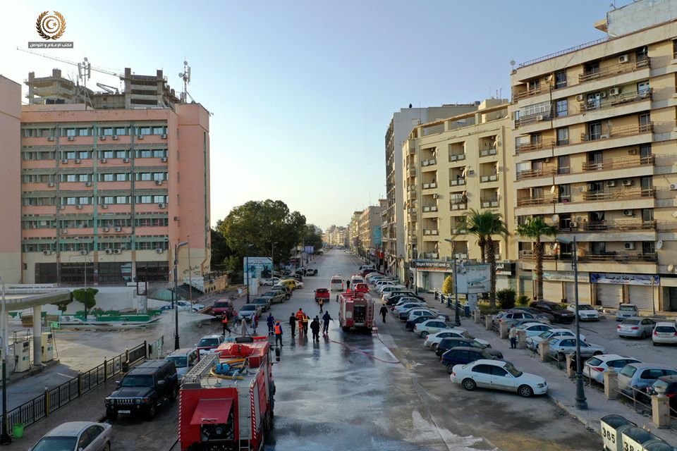 وتقضي تعليمات رئيس مجلس الوزراء بتعقيم كافة المؤسسات والشوارع الرئيسة للمدن والمناطق وتعميم هذه الخطوة على مختلف البلديات بمناطق جنوب وغرب ليبيا.