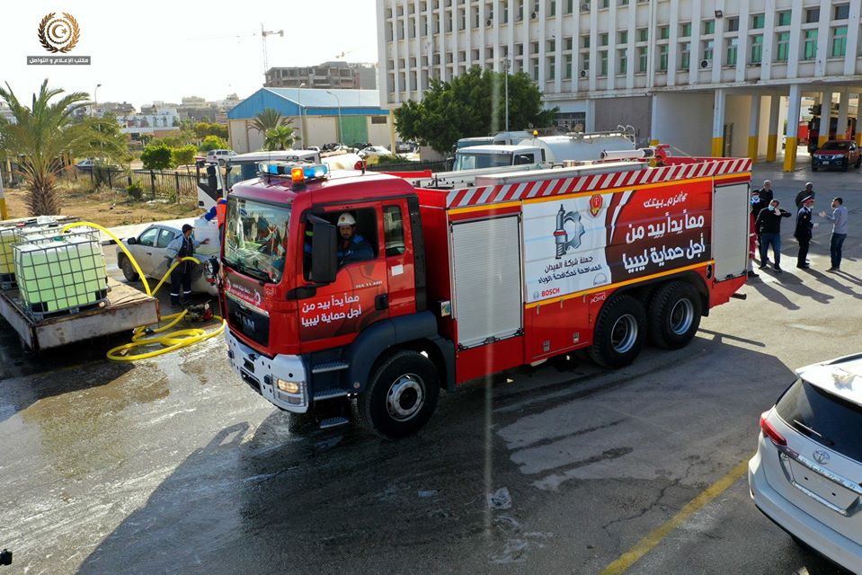 ليبيا – أطلقت رئاسة مجلس وزراء الحكومة الليبية أمس السبت حملة تعقيم واسعة للمدن والمناطق الخاضعة لسيطرة الحكومة الليبية خلال ساعات حظر التجول بالتعاون بين هيئة السلامة الوطنية – الدفاع المدني وشركة المياه والصرف الصحي.