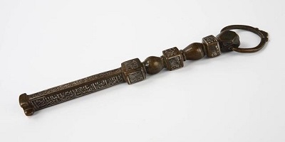 وأضافت: “نقش على هذا المفتاح آيات قرآنية من سورة الفتح بخط النسخ (إنا فتحنا لك فتحا مبينا ليغفر لك الله ما تقدم من ذنبك وما تأخر… إلى آخر الآية)”.
