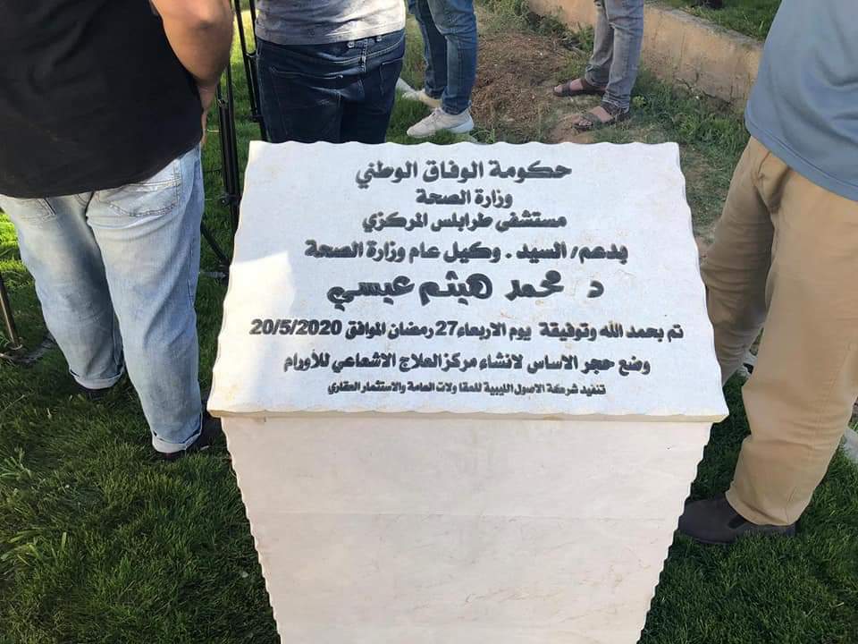 ليبيا – قام وكيل وزارة الصحة بحكومة الوفاق محمد عيسى أمس الأربعاء بوضع حجر الأساس لمركز العلاج الاشعاعي للأورام بمستشفى طرابلس المركزي.