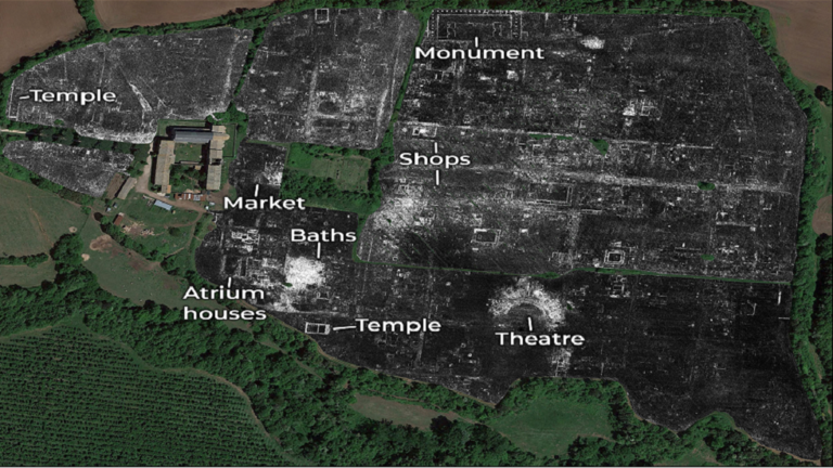 إيطاليا – كشف علماء عن مبان وتخطيط لمدينة رومانية بأكملها، باستخدام رادار يخترق سطح الأرض لإلقاء نظرة تفصيلية على ما هو مطمور في الأعماق.
