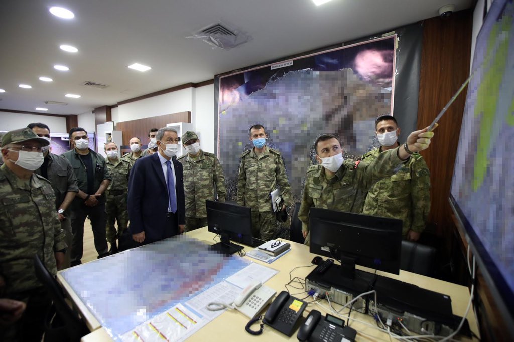 وزارة الدفاع التركية تنشر صور لزيارة وزير الدفاع التركي "خلوصي آكار" لغرفة عمليات الضباط الأتراك الموجودة في #طرابلس والمشرفة على العمليات العسكرية ومن بينهم ضباط أتراك مشغلين للطائرات المسيرة ومنظومات الدفاع.يظهر الوزير في الصور وهو يستمع لشروحات على خرائط مناطق ليبية . #المرصد pic.twitter.com/k7arFIW96E