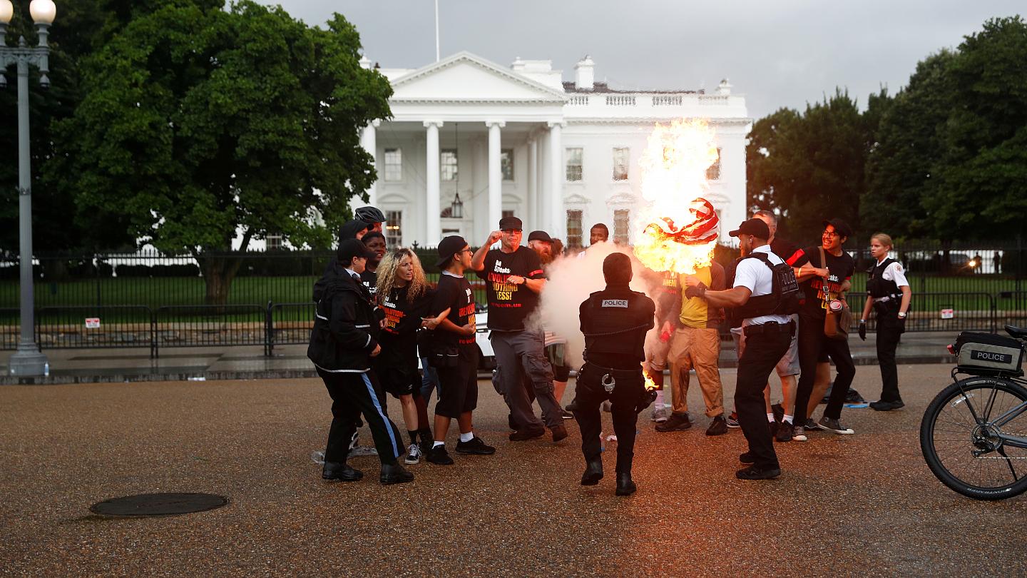 الولايات المتحدة – قام متظاهرون بحرق العلم الوطني الأمريكي بالقرب من البيت الأبيض في واشنطن، بعد الخطاب الذي ألقاه الرئيس الأمريكي دونالد ترامب، بمناسبة عيد الاستقلال.