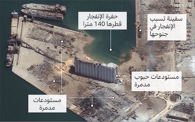 فقد ذكر مصدر أمني فرنسي لوكالة فرانس برس، نقلا عن خبراء فرنسيين، أن انفجار بيروت العنيف الذي دمر المرفأ وأجزاء من المدينة في الرابع من الشهر الجاري، وأدى إلى مقتل ما لا يقل عن 159 شخصا، تسبب بحفرة عمقها 43 مترا.