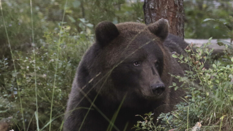 ويظهر الفيديو الدب وقد علق رأسه داخل صندوق معدني، وصعد بذلك الشكل إلى أحد أبراج الاستطلاع للقاعدة العسكرية.