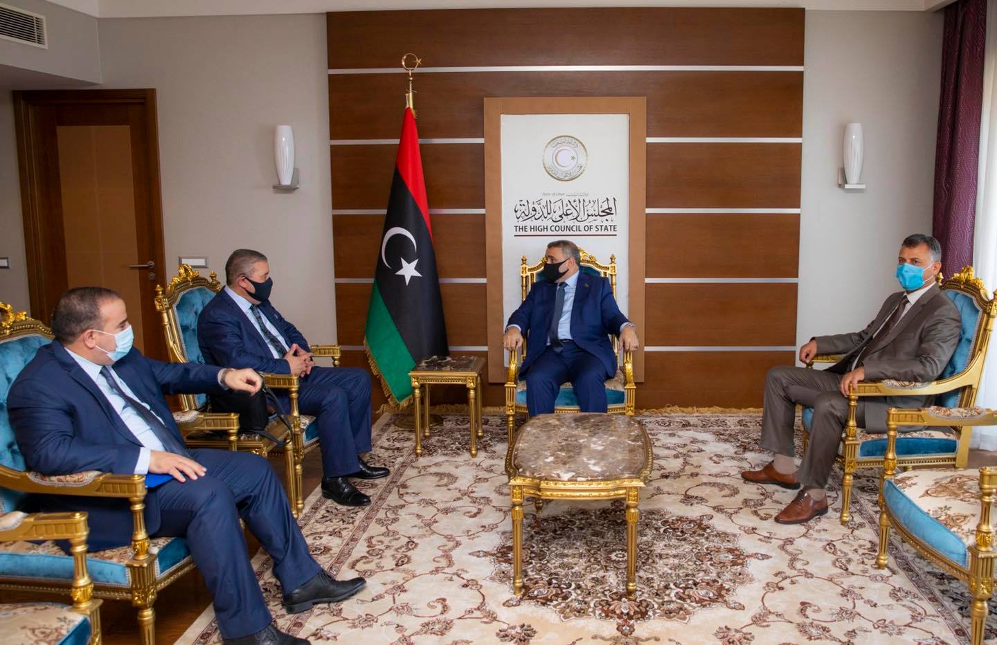 اللقاء تناول -بحسب المكتب الإعلامي لمجلس الدولة- أهم القضايا ذات الاهتمام المشترك وسبل التعاون وتعزيز العلاقة بين البلدين، بالإضافة إلى الدور الإيجابي الذي تلعبه الجارة والشقيقة الجزائر في حلّ الأزمة الليبية.