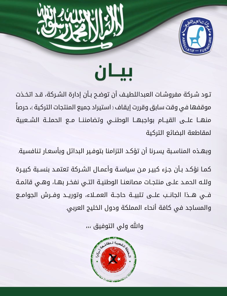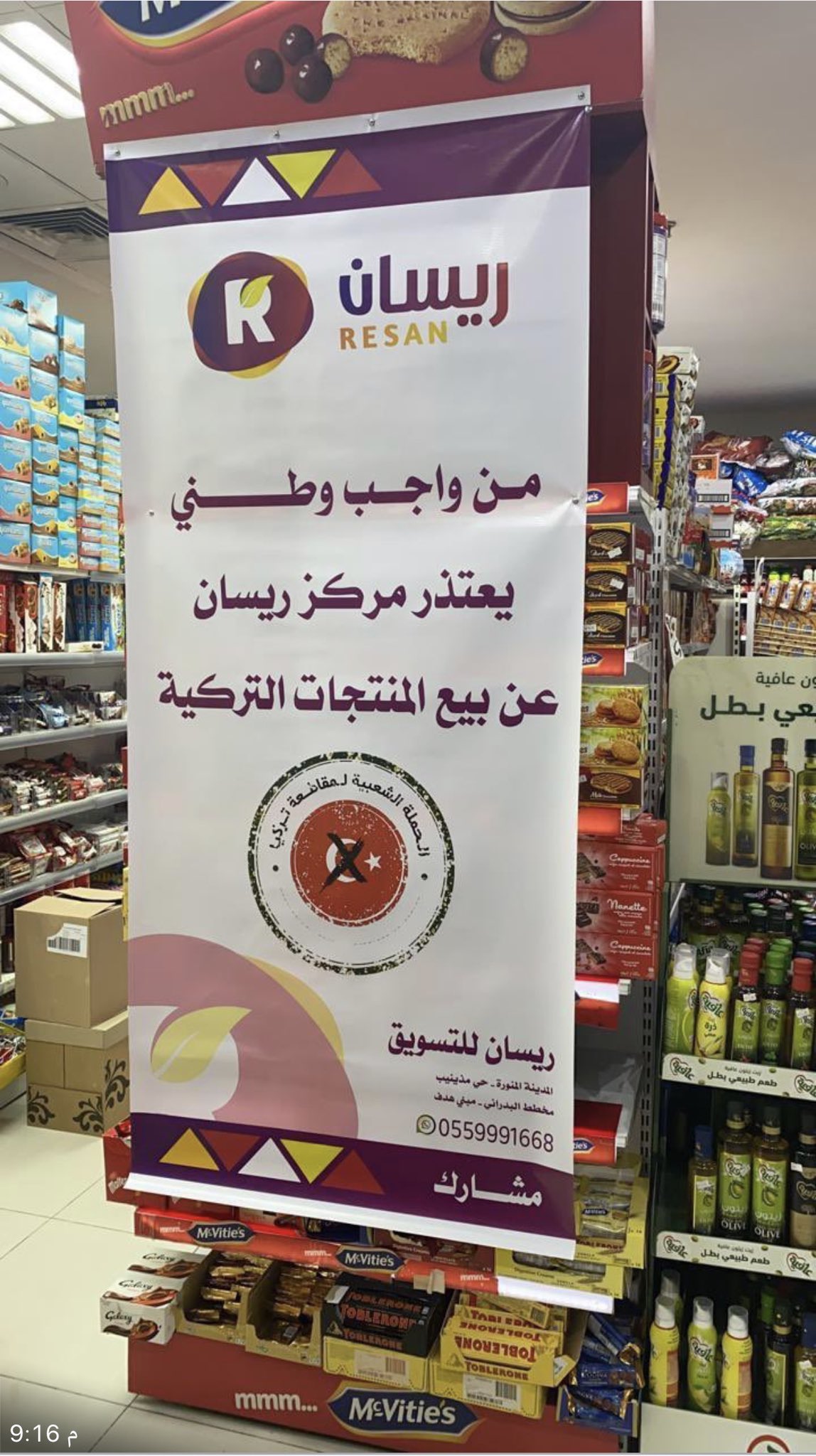 وأظهرت الصور الواردة من المملكة تكدّس البضائع التركية في الأسواق دون زبائن، فيما أعلنت أخرى توقّفها عن استيراد البضائع التركية أو أعلنت وقف بيعها، وأظهر صورة من سوق ريسان في المدينة المنورة عبارة مكتوب عليها “نعتذر عن بيع المنتجات التركية”.