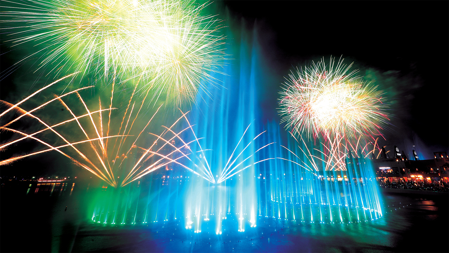 وعلى أنغام وألحان مجموعة من الأغاني الشهيرة، انطلقت أمس الخميس المياه نحو السحاب، وسط حضور جماهيري كبير، ملوحين برايات موسوعة “غينس”، تعبيرا عن تسجيل النافورة الجديدة في الموسوعة باعتبارها الأعلى في العالم.