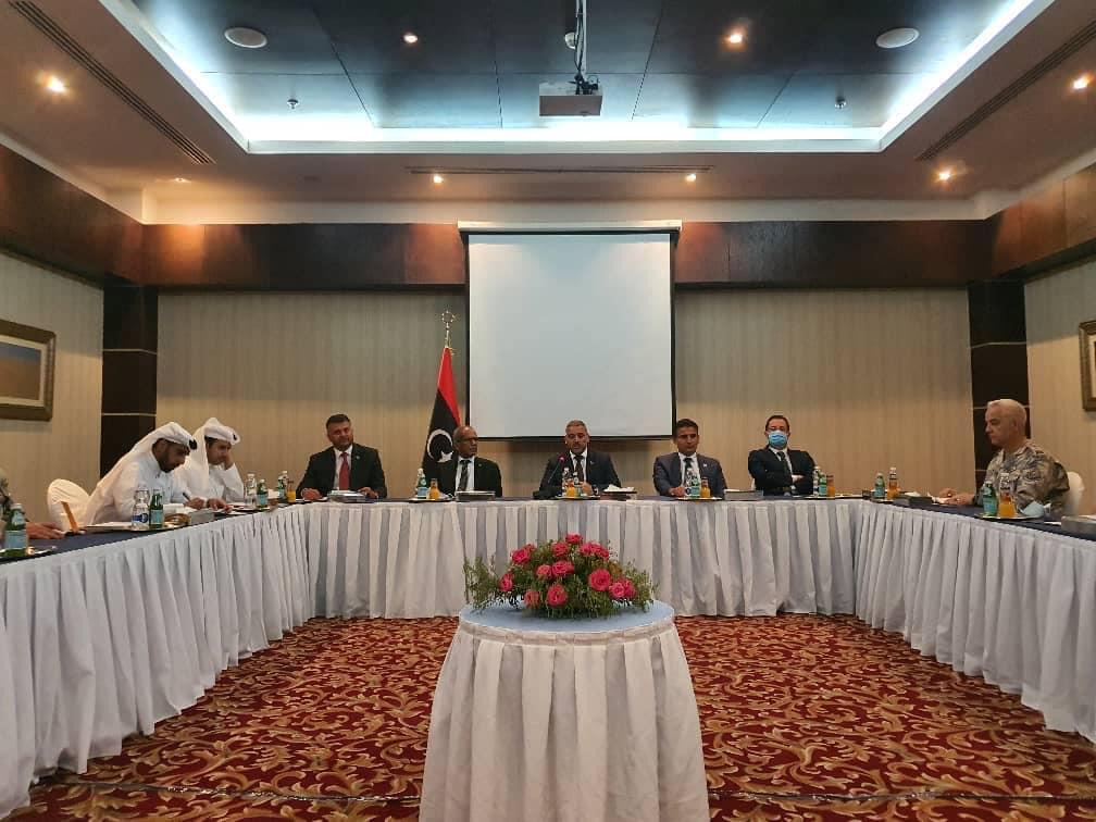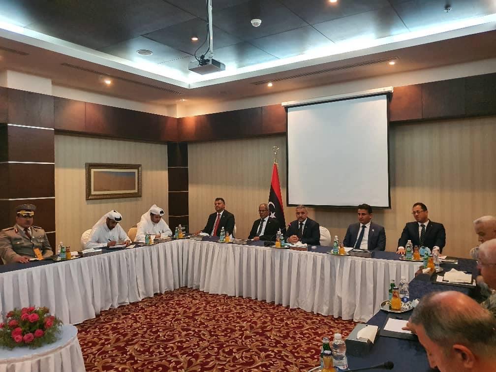 المري مع وزيري دفاع تركيا وقطر خلال اجتماع مع باشاآغا في طرابلس