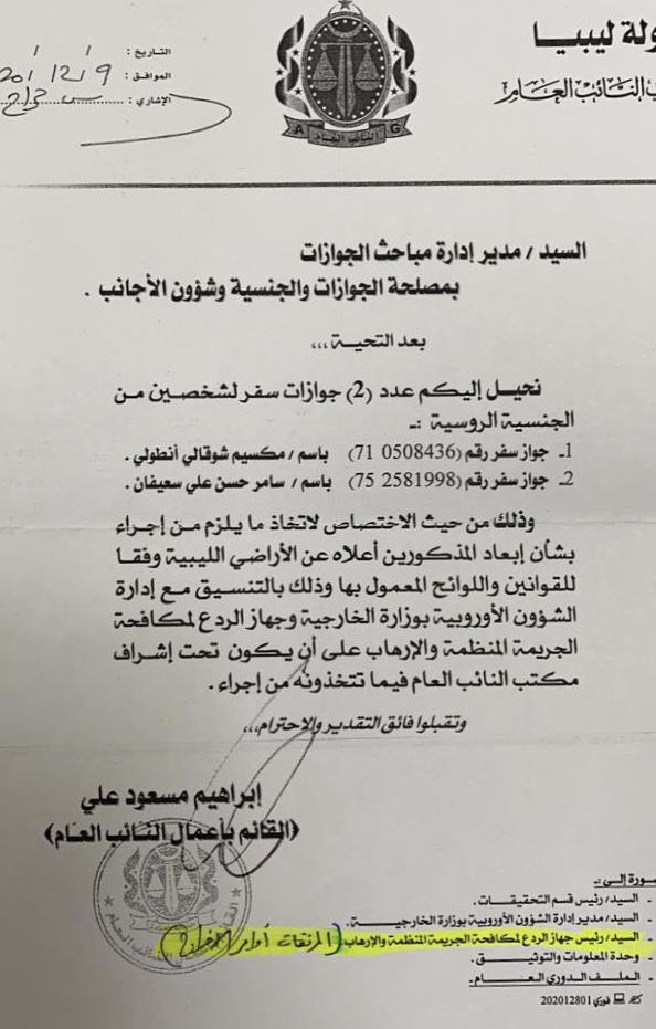 أصدر مكتب النائب العام في طرابلس أمرًا بالإفراج عن المحتجزين الروس في طرابلس بعد 21 شهرًا من الاعتقال بزعم “محاولة التأثير على الانتخابات لصالح سيف الإسلام القذافي”، وقد غادروا طرابلس فعلًا نحو وجهة أخيرة ستكون سان بطرسبيرغ الروسية.