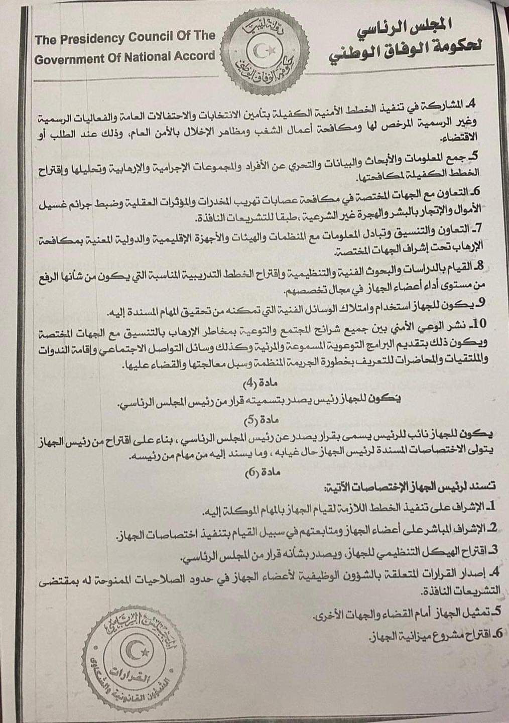 3 اقتراح الهيكل التنظيمي للجهات ويصدر بشأنه قرار من المجلس الرئاسي.