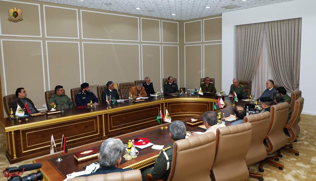 ليبيا –  عقد القائد العام للقوات المسلحة المشير خليفة حفتر أمس الإثنين اجتماعًا برئيس الغرفة الأمنية بنغازي الكبرى الفريق عبدالرازق الناظوري، ووزير الداخلية الليبية المستشار إبراهيم بوشناف، وكافة أعضاء الغرفة الأمنية.