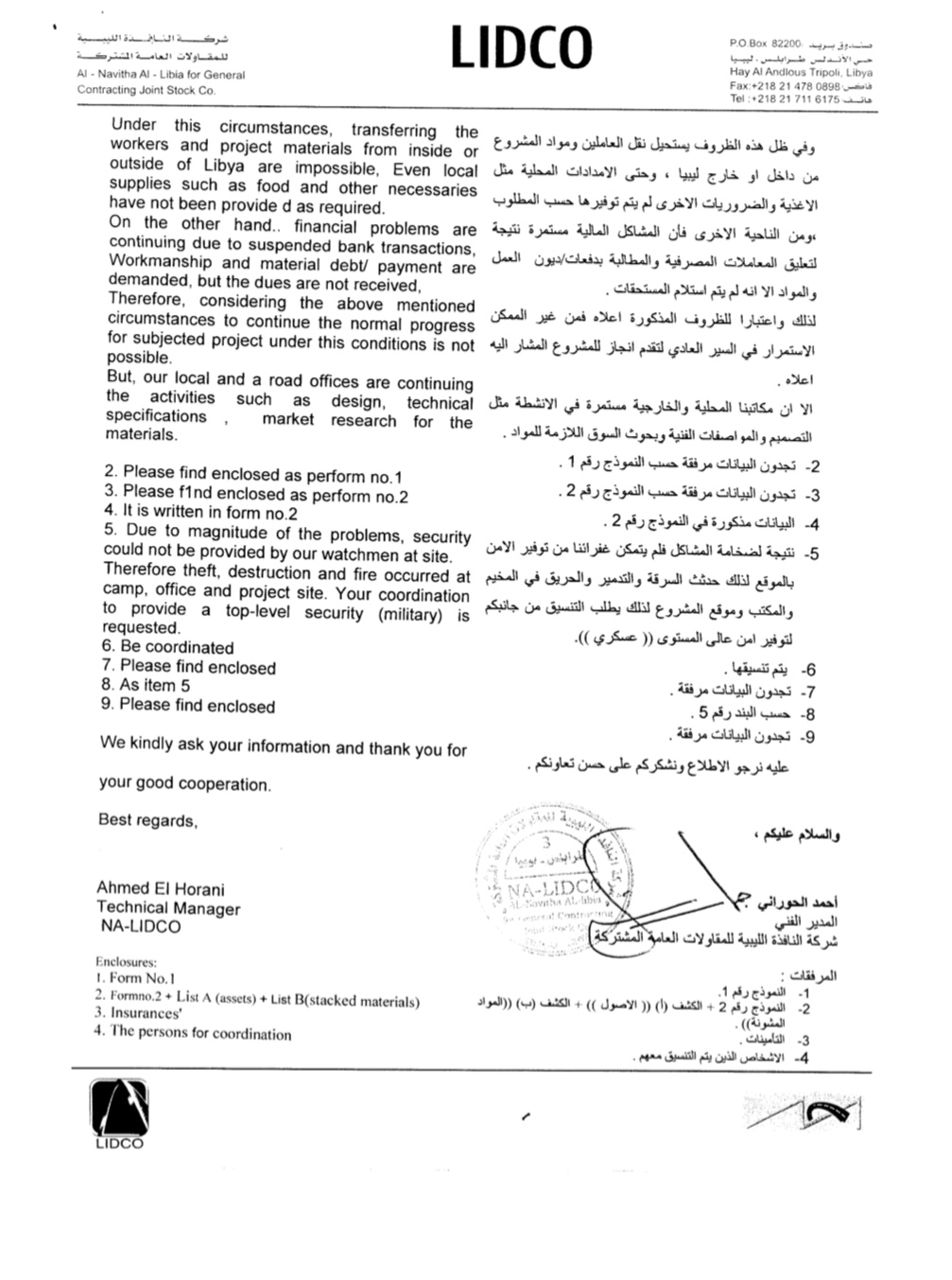 وأوضح التقرير السنوي أن الشركة لديها ما يصل لألفي عامل في ليبيا، فيما أقر إليجاك بمنح “ليدكو” شركته مشاريع في 6 مدن بإجمالي 2 مليار دولار، ناقلًا عنه إدعاءه خلال احتفالات الذكرى الـ41 لثورة العقيد الراحل القذافي أن العلاقة الخاصة بين الحكومة الليبية وشركات بلاده مبنية على الثقة وجودة العمل.