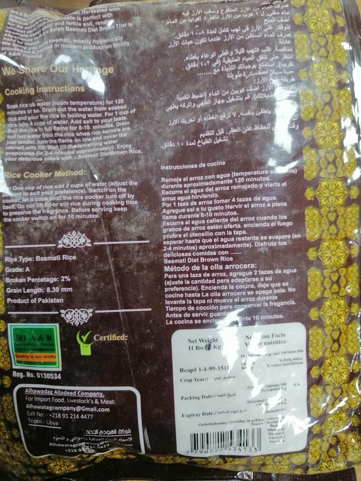 ليبيا – رفض مركز الرقابة على الأغذية والأدوية الأربعاء شحنة أرز بني للحمية الغذائية بسبب وجود تسوس شديد فيها.