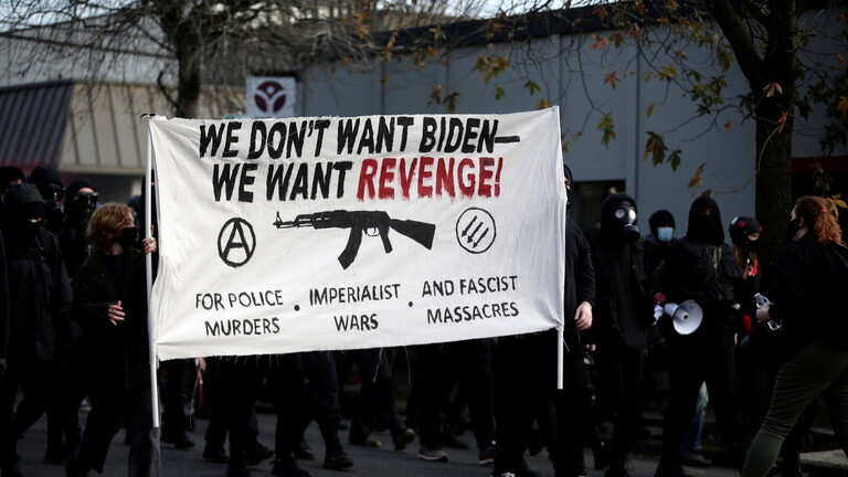 الولايات المتحدة – شهدت مدينة بورتلاند الأمريكية تظاهرة مناهضة للرئيس الأمريكي، جو بايدن، تخللها تحطيم لمقر الحزب الديمقراطي في ولاية أوريغون، وذلك بعد ساعات قليلة من تنصيب بايدن رئيسا للبلاد.