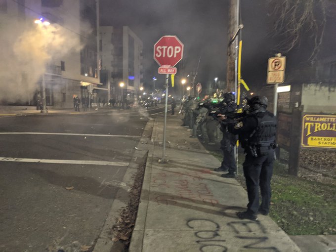 وبعد وصولهم أعلنت القوات الفدرالية أن هذا التجمع غير قانوني، وقد عملت القوات على إطلاق قنابل الغاز المسيلة للدموع بهدف تفريق المتظاهرين.