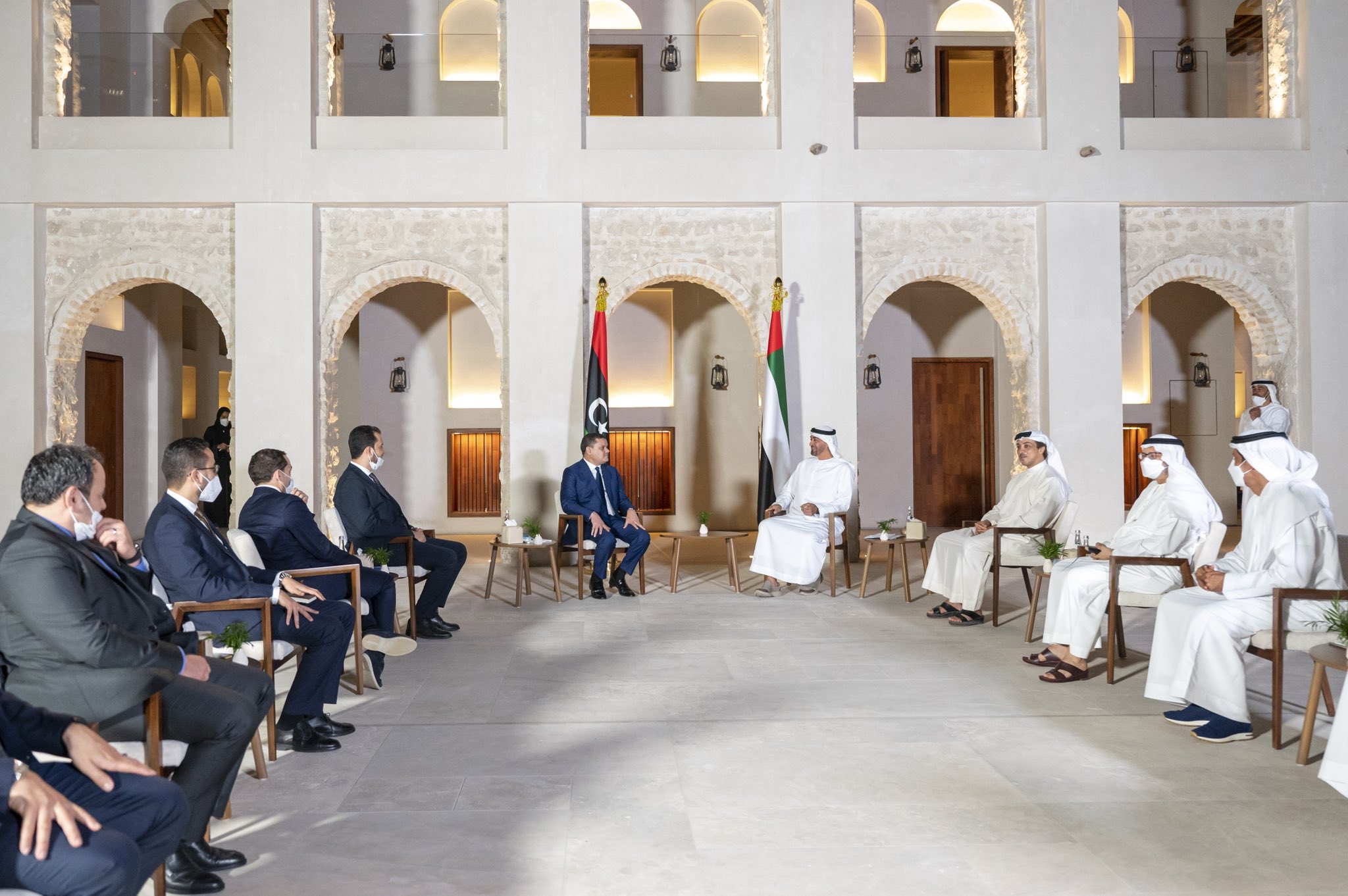 ليبيا – استقبل الشيخ محمد بن زايد آل نهيان ولي عهد أبوظبي اليوم الأربعاء عبد الحميد الدبيبة رئيس حكومة الوحدة الوطنية والوفد المرافق له بقصر الحصن.