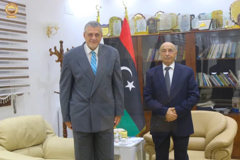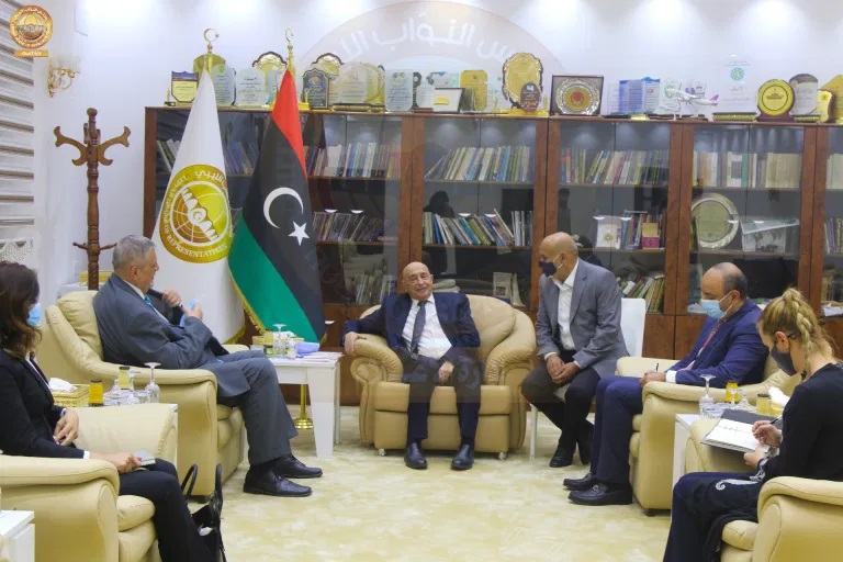 ليبيا – عقد رئيس مجلس النواب المستشار عقيلة صالح جولة مباحثات مع المبعوث الأممي يان كوبيتش في مكتب الأول في مدينة القبة.