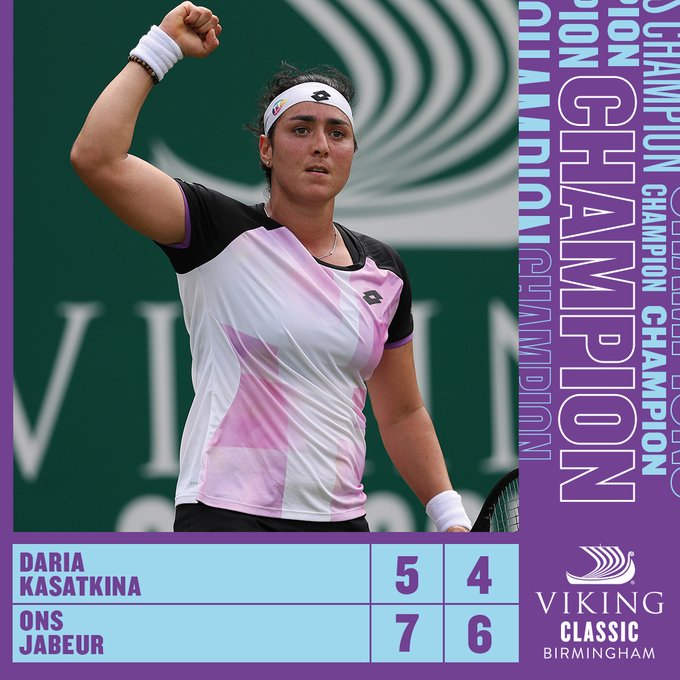 إنجلترا – باتت التونسية أُنس جابر أول لاعبة عربية تحرز لقبا في بطولات رابطة محترفات التنس، بفوزها امس في نهائي بطولة برمنغهام على الروسية داريا كاساتكينا بمجموعتين متتاليتين 7-5 و6-4.