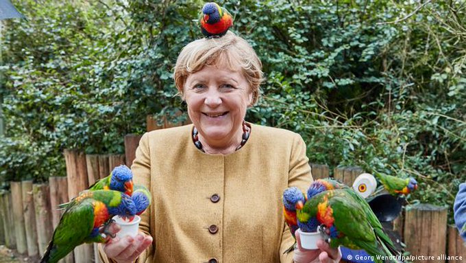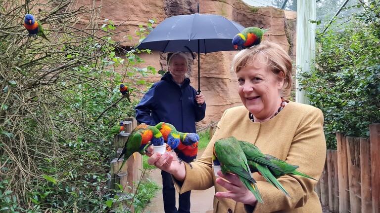 ولفتت “دير شبيغل” إلى أن ميركل ظهرت منفتحة بشكل غير عادي في حديقة الطيور، وتركت يديها محطا للطيور، حتى أن ببغاء اللوري الأسترالي حط على رأسها، ووقفت ببغاوات أخرى على كتفيها وذراعيها، فيما كانت ميركل تحمل في يدها كوبا ورقيا صغيرا به “رحيق لوري” معد من حبوب اللقاح المجففة والحبوب والماء. ولم تهب الطيور من المستشارة المنتهية ولايتها بل، وثقت بها وسمحت لها يإطعامها.