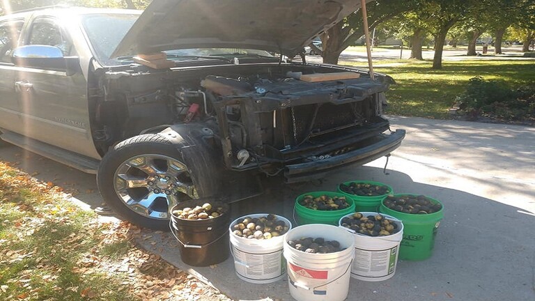 الولايات المتحدة – اضطر أحد سكان مدينة غراند فوركس الأمريكية لقضاء يومين في جمع الجوز من سيارته “شيفروليه أفالانش”، حيث تم استعمالها من طرف سنجاب بري للتخزين الشتوي.