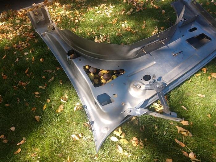 وتنمو ثمرة جوز كبيرة في حديقة منزل الرجل صاحب السيارة، الذي حقق حصادا كبيرا هذا العام. وحين لم يستعمل سيارته لمدة 4 أيام، اعتقد الحيوان أنها المكان المناسب لتخزين طعامه.