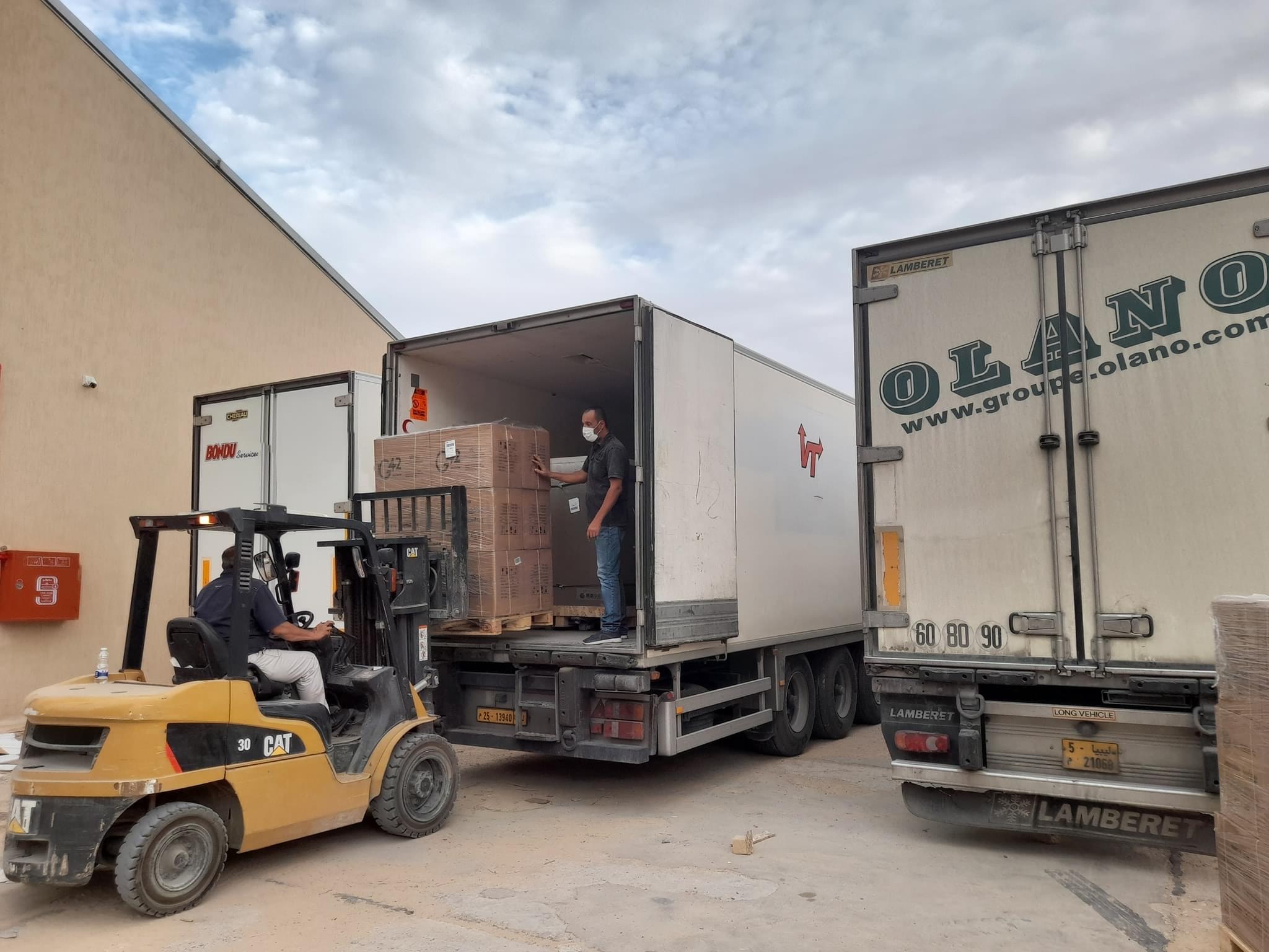 ليبيا – استلمت مخازن الحلقة الباردة بجهاز الإمداد الطبي أمس الأحد ثلاثة مليون جرعة من اللقاح المضاد لفيروس كورونا “سينوفارم الصيني Sinopharm”جرعة أولى وثانية، عقب وصولها مطار معيتيقة الدولي “شحن جوي” واستكمال الإجراءات الجمركية بالتنسيق مع الجهات ذات العلاقة.