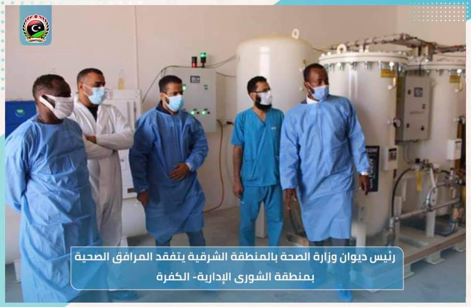 ليبيا – تفقّد رئيس ديوان وزارة الصحة بالمنطقة الشرقية إسماعيل العيضة قسم العزل، ومستشفى ليبيا القروي الواقعين بمنطقة الشورى الإدارية -الكفرة، واطّلع على سير العمل والخدمات الطبيّة المقدمة فيهما، الإثنين.