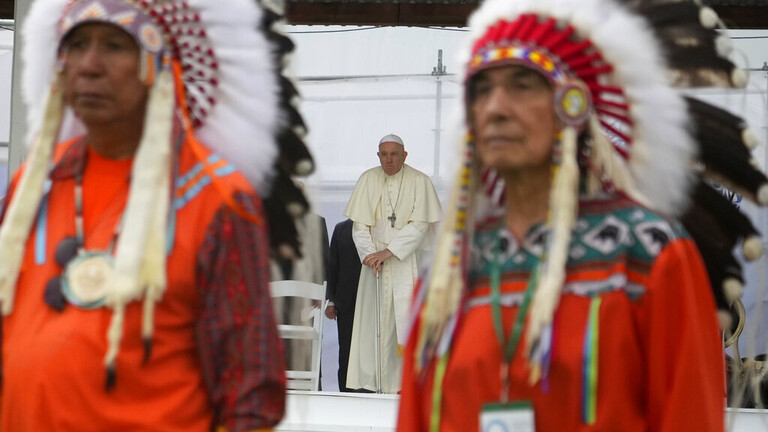 قال البابا في تصريح أمام مجموعة من شعوب “الأمم الأولى” و”ميتيس” و”اينويت” في ماسكواسيس في مقاطعة ألبيرتا الكندية: “أطلب المغفرة، لا سيما للطرق التي تعاون بها العديد من أعضاء الكنيسة والجماعات الرهبانية، وأيضا اللامبالاة التي أظهروها، في تلك المشاريع المدمرة للثقافات وفي الاستيعاب القسري الذي لجأت إليه حكومات ذلك الوقت، والذي بلغ ذروته في نظام المدارس الداخلية الإجبارية”.