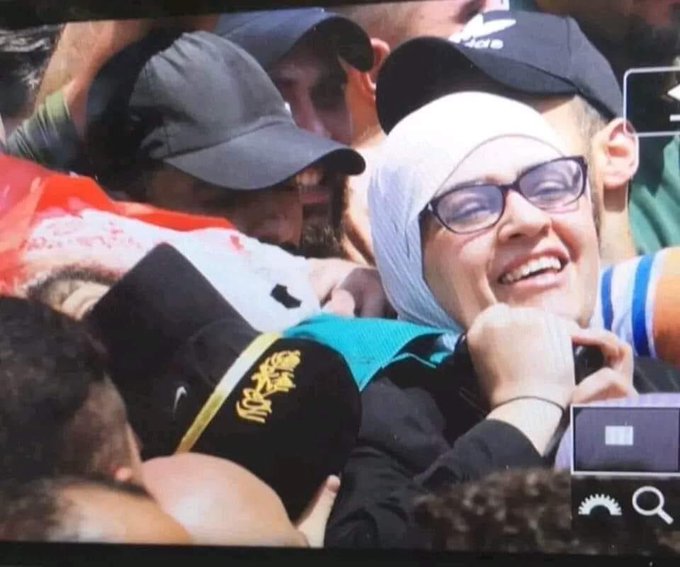 وانتشرت في مواقع التواصل الاجتماعي صورة والدة الشاب الفلسطيني الذي اغتالته القوات الإسرائيلية، إبراهيم النابلسي، وهي تحمل نعشه والابتسامة على وجهها، مجسدة “الثبات” و”القوة”.