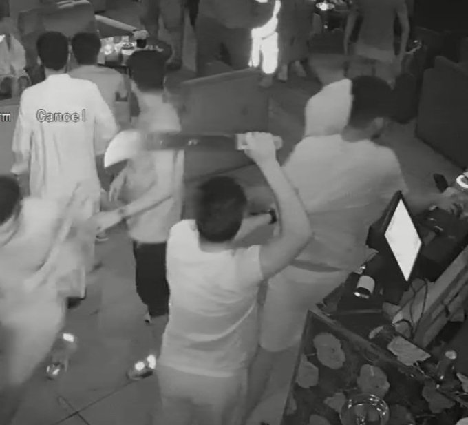 وفي فيديو نشره حساب “المجلس” تظهر مجموعة من الشبان وهم يدخلون إلى المقهى ومن ثم يبدأ تلاسن وتدافع بين عدد من الشبان، فيما يقوم شابان اثنان برفع آلة حادة (ساطور).