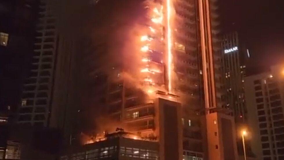 دبي – نشب حريق في ساعة مبكرة من صباح اليوم الاثنين في بناية شاهقة تتألف من 35 طابقا بمدينة دبي بالقرب من برج خليفة، أطول مبنى في العالم.
