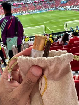 وتمثلت الهدايا في كيس مليء بالجوائز المعبرة عن مونديال قطر تتضمن مسكا وعودا، بخلاف هدايا رمزية أخرى منها على سبيل المثال دمية لتميمة بطولة كأس العالم “قطر 2022″، و”تي شيرت”.