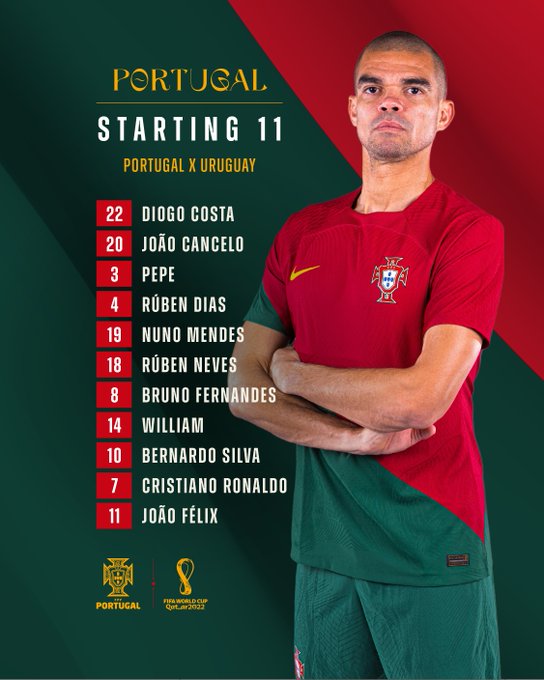 وسيبدأ المدير الفني لمنتخب البرتغال، فيرناندو سانتوس (68 عاما)، بالتشكيلة الأساسية التالية لخوض مباراته الأولى في مونديال قطر 2022، ضد نظيره الأوروغواني: