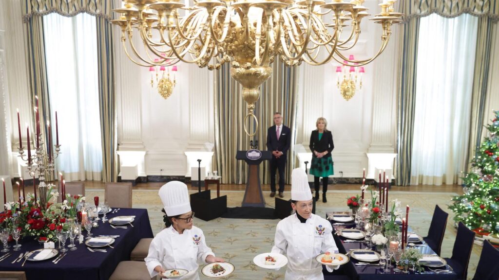 الولايات المتحدة – كشفت شبكة “سي إن إن” أن البيت الأبيض أنفق 500 ألف دولار على حفل عشاء رئيس الولايات المتحدة جو بايدن، ونظيره الفرنسي إيمانويل ماكرون امس الخميس.