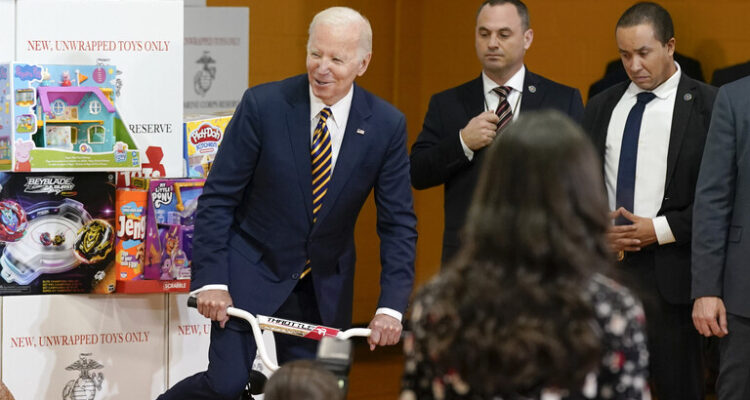 وانضم بايدن إلى شخصيات تعمل في وزارة الدفاع وأطفال لعسكريين محليين في قاعة بقاعدة ماير هندرسون المشتركة في السمة المميزة لـ “Toys for Tots”، لفرز الهدايا غير المغلفة، والتي تم التبرع بها حسب العمر لتوزيعها على العائلات المحتاجة.