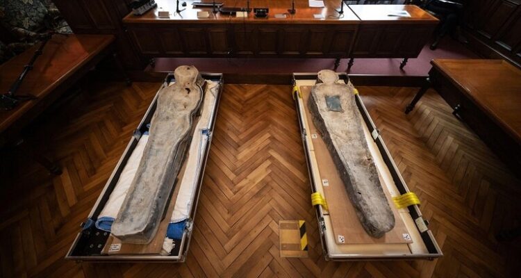 وتجدر الإشارة، إلى أن العلماء عثروا على التابوتين خلال عمليات الحفر التي جرت بعد حريق عام 2019. حينها عثر العلماء بالإضافة إلى ذلك على عدد من المنحوتات تم تحديدها على أنها أجزاء من التقسيم الأصلي للقرن الثالث عشر، وهي العنصر المعماري الذي يفصل المذبح عن الصحن. وقد تم العثور على معظم القطع الأثرية تحت أرضية الكاتدرائية على عمق 20 سم فقط، أما التابوت الذي يكرر شكل الجسم، فكان على عمق متر.