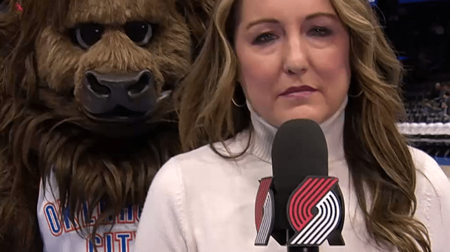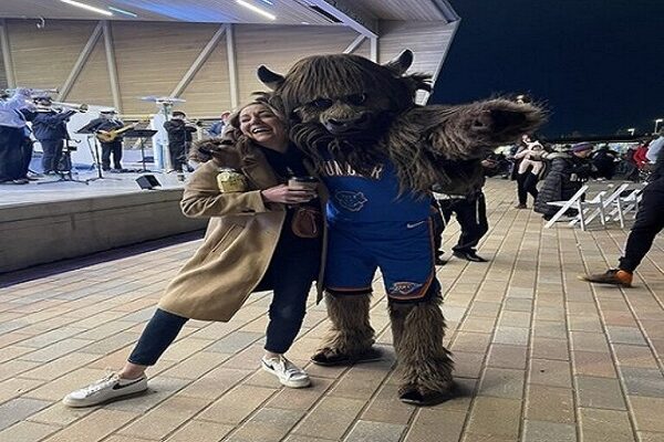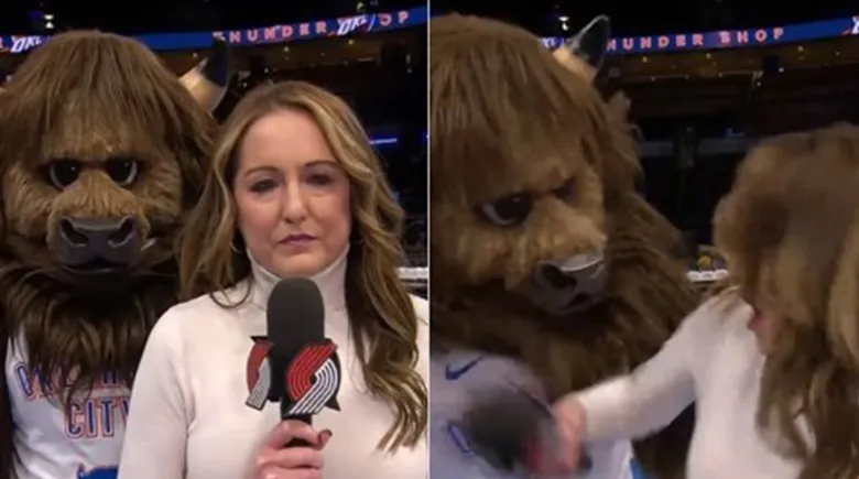 وأظهر المقطع اقتراب رجل يرتدي تميمة فريق “أوكلاهوما سيتي ثاندر” من أولزيندام بشكل مفاجئ، أثناء استعدادها للبث المباشر، دون أن تلاحظ.