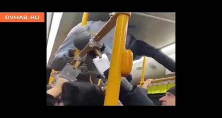 روسيا – فوجئ سكان مدينة خاباروسك الروسية من ركاب الحافلة رقم 25 بصورة غريبة للغاية عندما رأوا رجلا يزحف على الدرابزين فوق رؤوس الركاب.