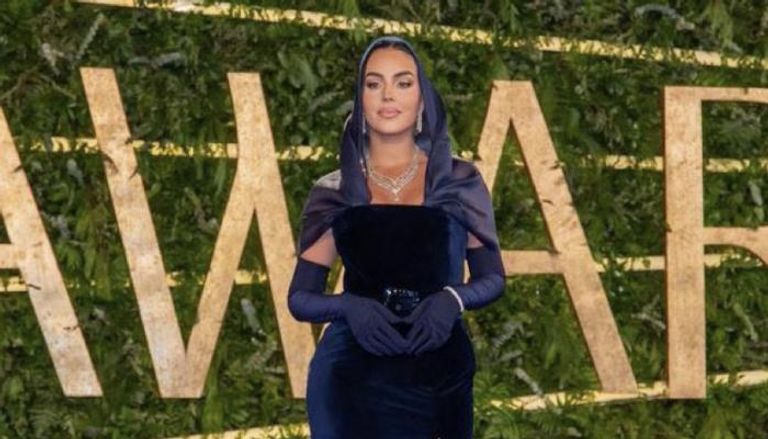 كما لفتت جورجينا الأنظار، عند ظهورها على السجادة البنفسجية، بفستان كحلي غامق اللون، مع غطاء للرأس ومجوهرات فاخرة.