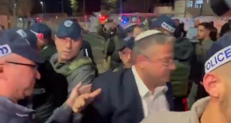 ونشرت وسائل إعلام عبرية، صورة تظهر بن غفير وهو يتحدث إلى ضباط أمن في الشرطة ممن هم في موقع العملية.