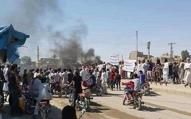 سوريا – نظم السكان العرب في مناطق خاضعة لسيطرة تنظيم “بي كي كي/ واي بي جي” الإرهابي بمحافظة دير الزور شرقي سوريا، احتجاجات على الاعتقالات التعسفية وتردي الوضع المعيشي.