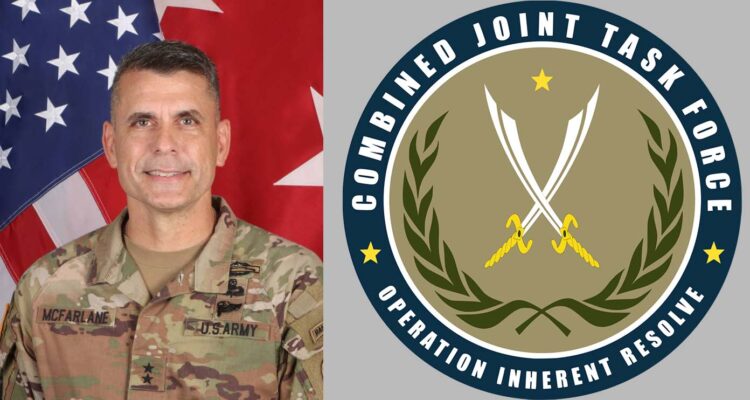 اللواء ماثيو مكفارلين: السلام عليكم. يشرفني أن أكون هنا لمناقشة عمل المهم لقوة المهام المشتركة – عملية العزم الصلب في العراق وسوريا. كما تعلمون . فإن التحالف موجود هنا بناءً على طلب من حكومة العراق ، ومهمتنا الأساسية هي تحقيق الهزيمة الدائمة لداعش بشكل عام ومنع عودة ظهوره. نحقق ذلك من خلال تقديم المشورة والمساعدة والتمكين لشركائنا – أي قوات الأمن العراقية والبيشمركة وقوات سوريا الديمقراطية.