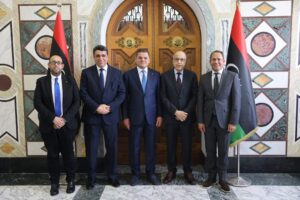 ليبيا – اجتمع رئيس حكومة تصريف الأعمال عبد الحميد الدبيبة مع محافظ المركزي الصديق الكبير ورئيس ديوان المحاسبة خالد شكشك، بحضور وزير الدولة لشؤون مجلس الوزراء عادل جمعة ومستشار المحافظ مصطفى المانع.
